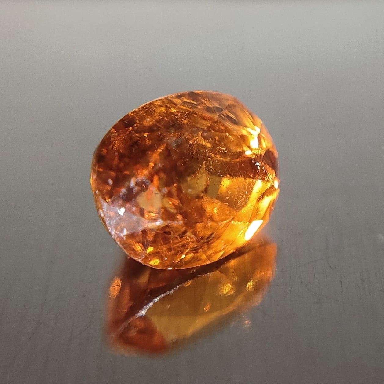 マンダリンガーネットはいわゆるコマーシャルネームであり、スペサルタイトガーネット(スペサルティンガーネット)の中でも少し黄色みのあるオレンジ色のものを特別にマンダリンガーネットと呼んでいます。